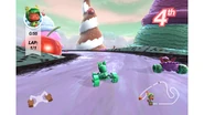 During the Random Roster Race, King Candy is seen making his way through Frosty Rally as Vanellope catches up. Vanellope manages to take the lead while King Candy tries to take back the lead. However King Candy takes a shortcut that says this road is closed.