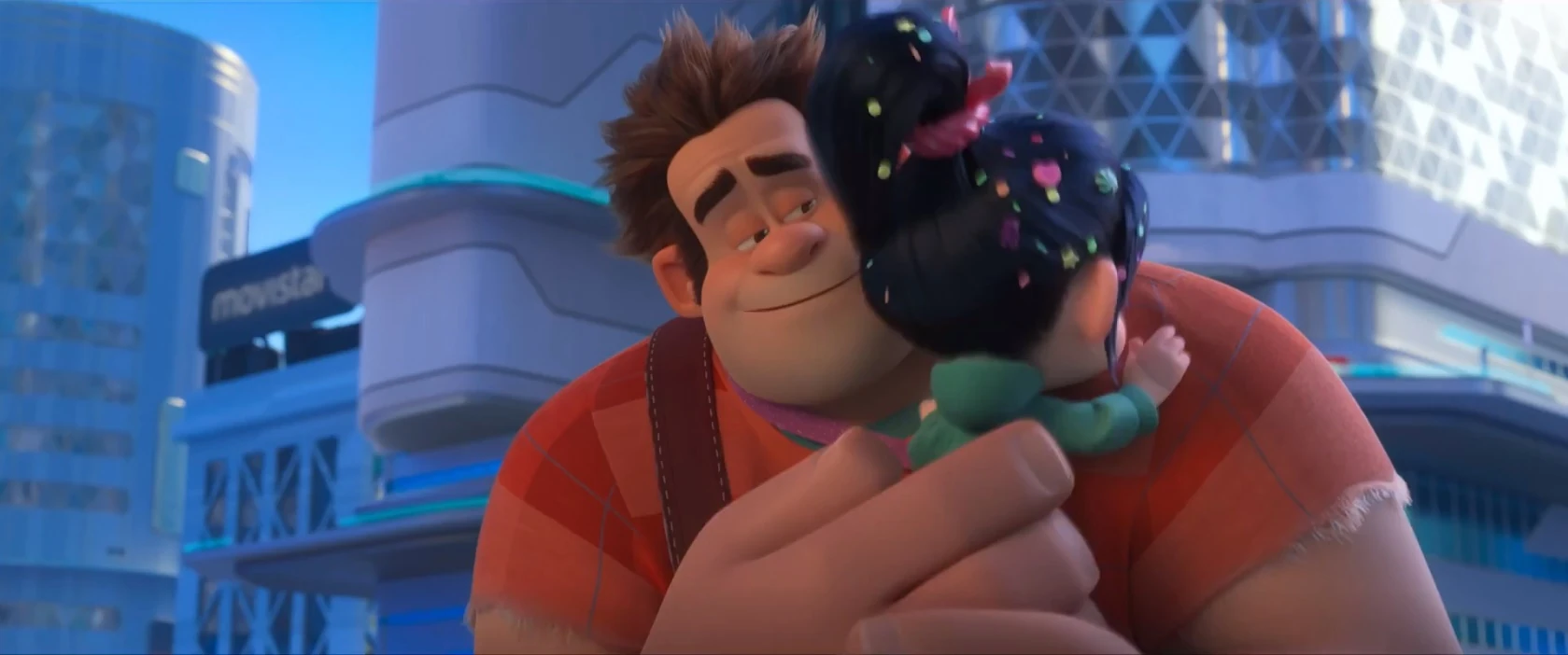 Ralph and Vanellope share a hug