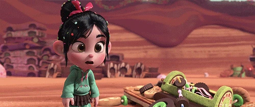When Vanellope first meets Ralph in the first movie, they start off on the wrong foot as Vanellope steals Ralph's medal earned from Hero's Duty and uses it to get into a race. She promises to return it if he helps her win the race since Sugar Rush racers are returned their medals used to enter the race once they finish it. Ralph is obviously peeved by the request as he wants to continue his game-hopping quest, but he does it anyway for the hardship of the medal. Since Vanellope's original kart the Lickety-Split was destroyed by the other racers, she and Ralph have to start from the beginning, breaking into the kart bakery to build a real kart for her to race with.